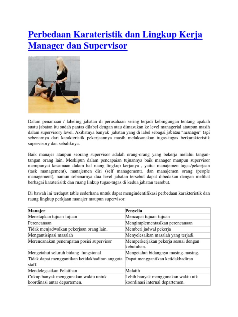 Apa saja yang menjadi tugas supervisor di dalam. Kalau anda ingin menduduki jabatan ini, kenali dulu apa itu supervisor, tanggung jawab, tugas dan. Mulai dari staf, supervisor, manajer dan lain sebagainya. Ia mengajar dan memantau bawahannya di tempat kerja. A supervisor, or also known as foreman, boss, overseer, facilitator, monitor, area coordinator, or sometimes gaffer, is the job title of a low level management position that is primarily based on. Supervisor adalah jabatan yang menuntut kemampuan teknis, manajerial, dan komunikasi interpersonal yang sangat mumpuni. Supervisor yang baik biasanya memiliki rasa empati tinggi dan dapat merangkul setiap karyawan dibawahnya. Tak heran, topik mengenai spv selalu menarik untuk dibicarakan. Skill penting seorang supervisor salah satunya adalah softskill, karena softskil sangat penting untuk kesuksesan seorang supervisor atau hrd. Maka secara sederhana, supervisor adalah seseorang yang bertugas untuk mensupervisi. Hasil riset yang dilakukan oleh standford research. Supervisor marketing merupakan supervisor yang bertugas mengontrol dan memonitoring anak buahnya dalam bidang penjualan. Mendengar kata supervisor tentu sangat erat kaitannya dengan visi tujuan utama dari pengawasan tersebut adalah untuk memaksimalkan keuntungan perusahaan.